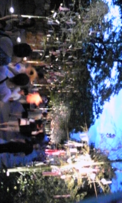 」という事で竹の巨大アーチの上部にLEDによる天の川が輝き堀川にはLEDを内蔵した玉「いのり星」が流れます。