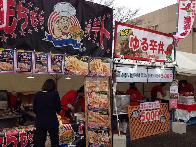 今回、私達は京都向日市激辛商店街のオリジナルメニュー『ゆる辛丼』とおなじみ『もちもちポテト』を販売。