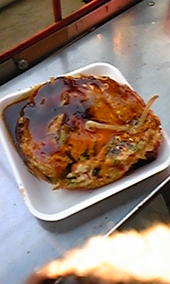 半熟玉子入りの小さいお好み焼きでしたよ