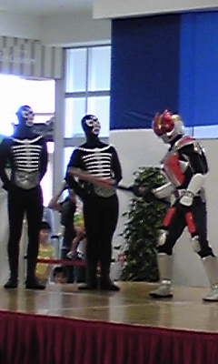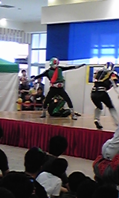 仮面ライダーショーに来てた男の子の話しだとオーズと電王が来てるとの事。